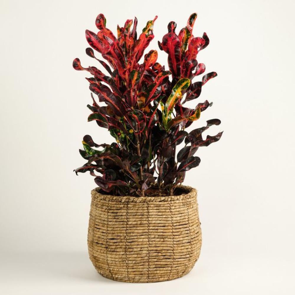 نبات الكروتون من النباتات الداخلية المميزة، يعرف بأوراقه العريضة الملونة التي تجمع بين الأخضر والأصفر والأحمر والبرتقالي، ليضفي لمسة حيوية ونابضة على أي مكان.